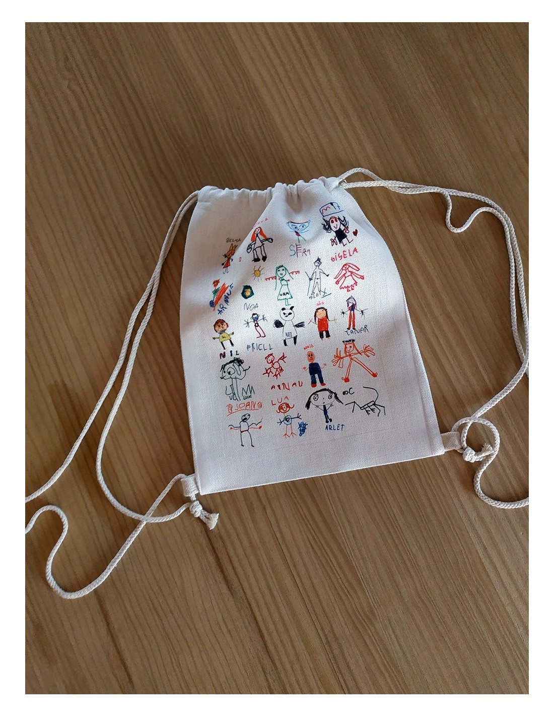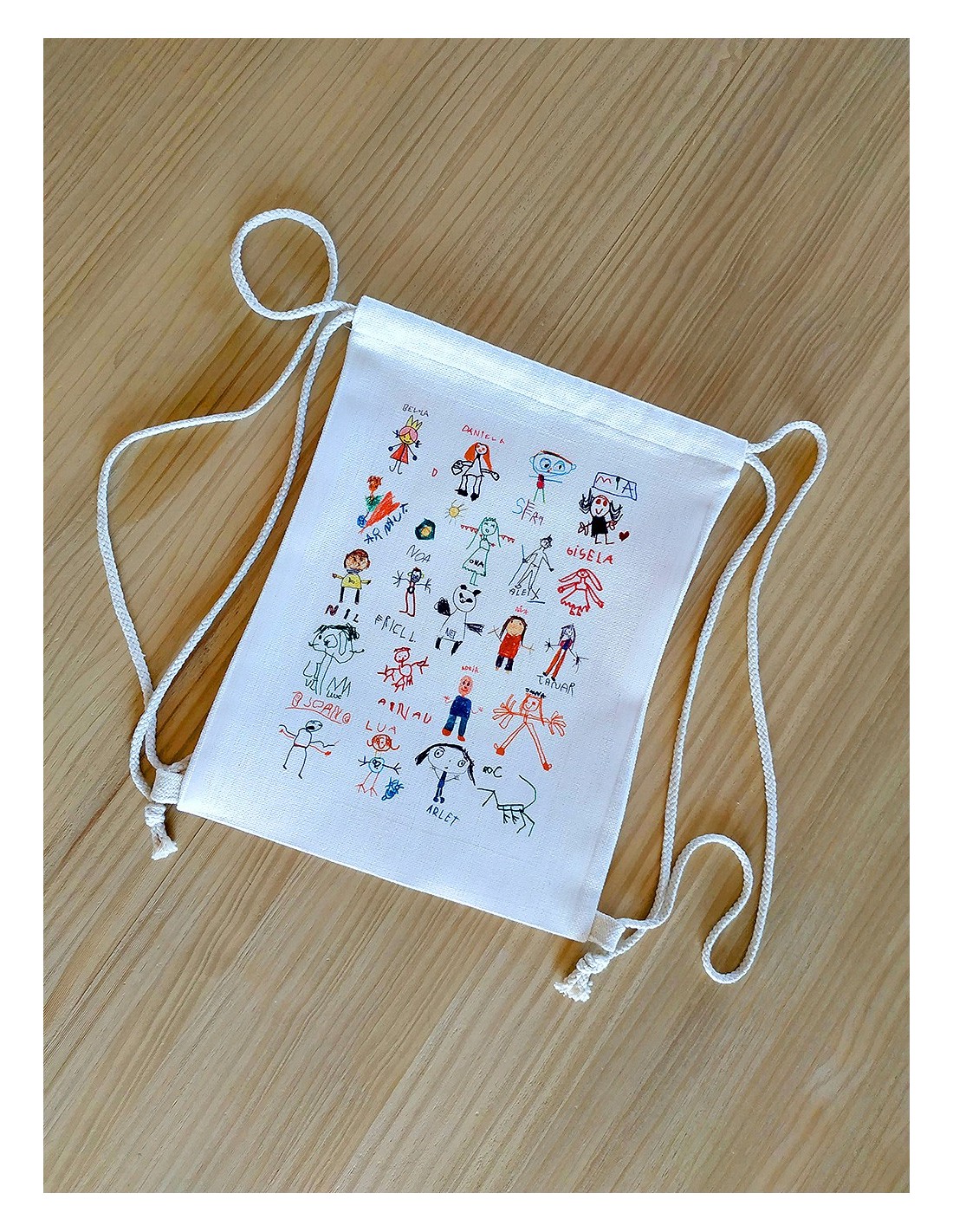 Sac à dos à ficelle doux au toucher avec des ficelles autobloquantes de couleur naturelle et des coins renforcés.